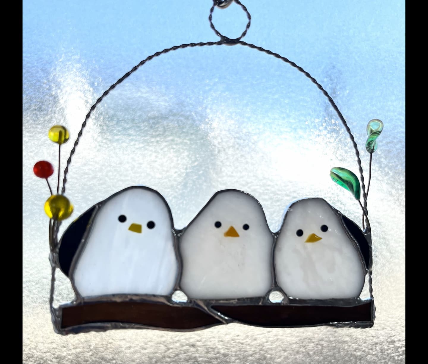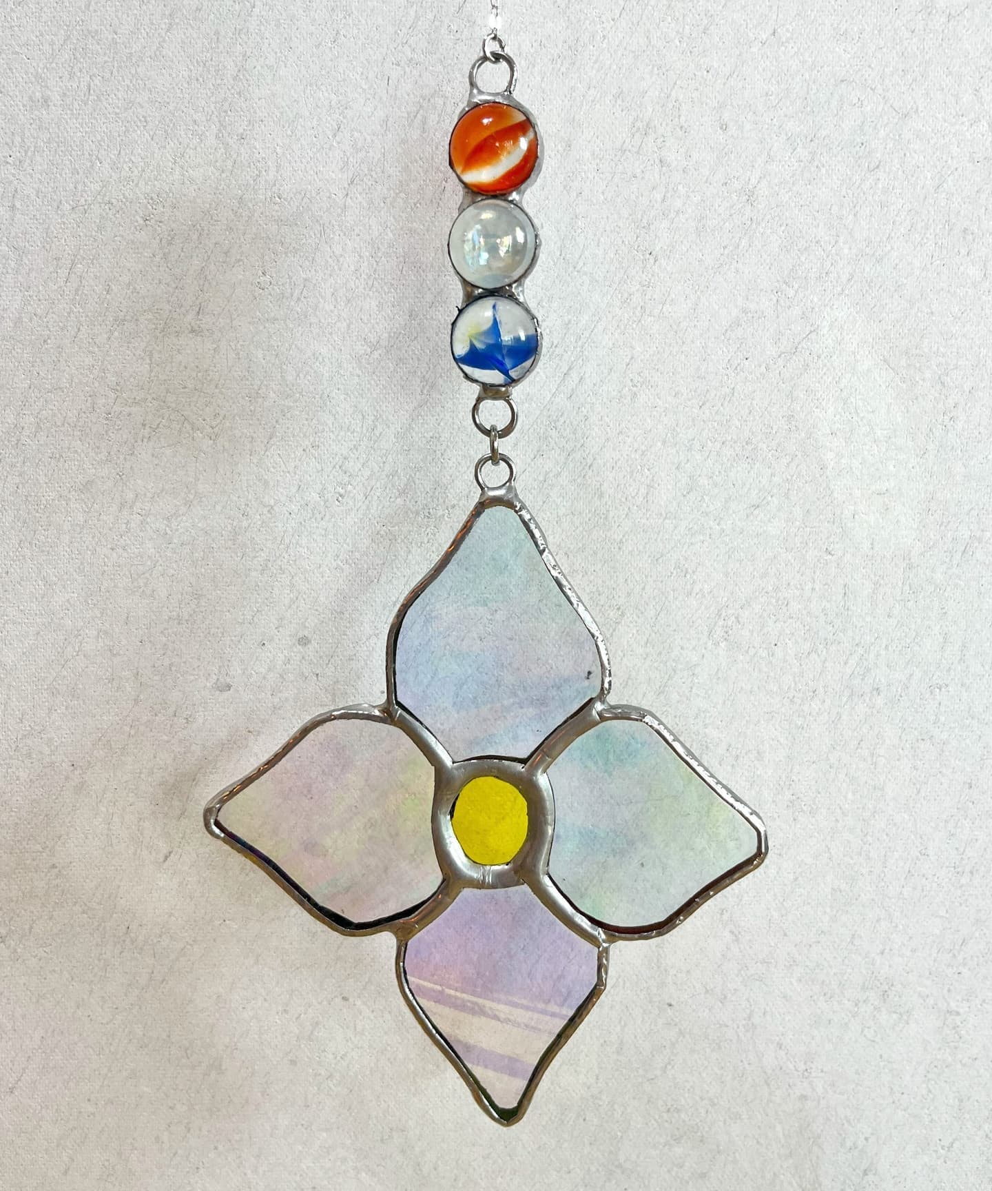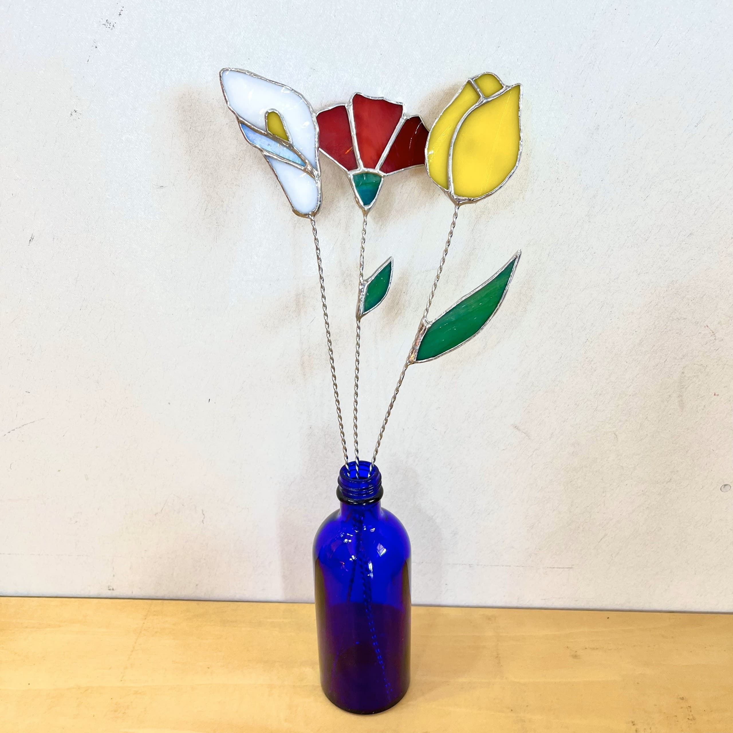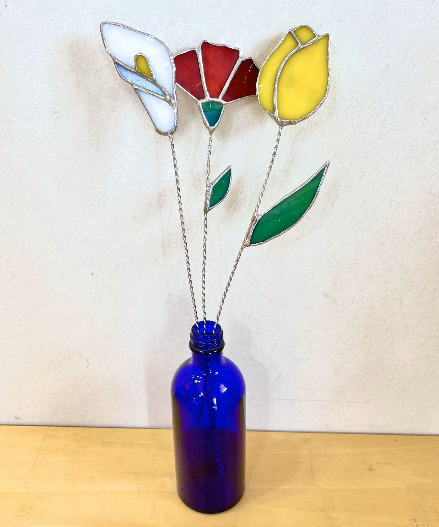 お花の上、丸3つの部分はガラスの形と色を選んでいただきます。