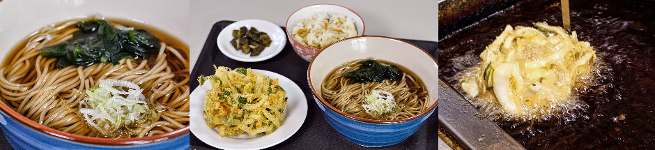 (まぜごはん、かき揚げ、そば・うどん、お新香)