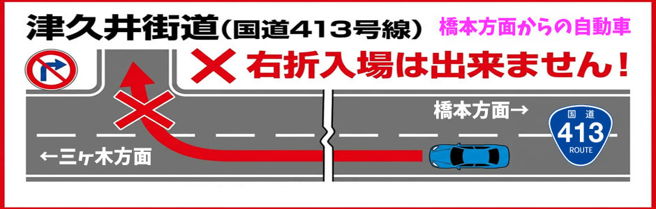 JR・京王線「橋本駅」北口下車 1番 バス乗り場 「三ケ木」行きバス乗車(1時間に4〜5本出ています) 「津久井湖観光センター前」下車 徒歩1分(橋本駅から20分前後。渋滞状況により変わります)